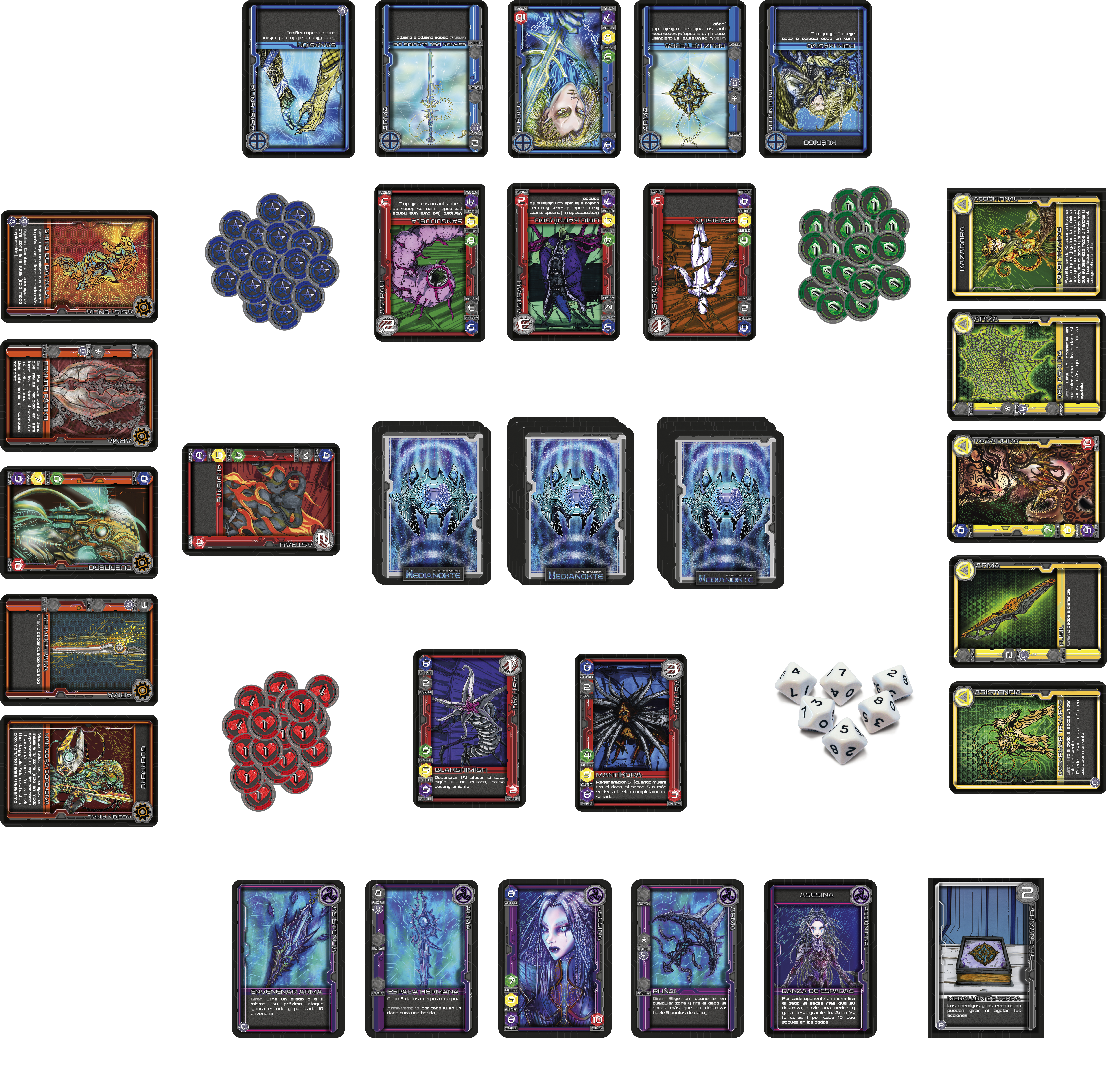 1.- Separa las cartas de astralis, eventos (incluyendo positivos, neutrales y negativos) y objetos (incluyendo armas, permanentes y descartables) en 3 grupos respectivamente.